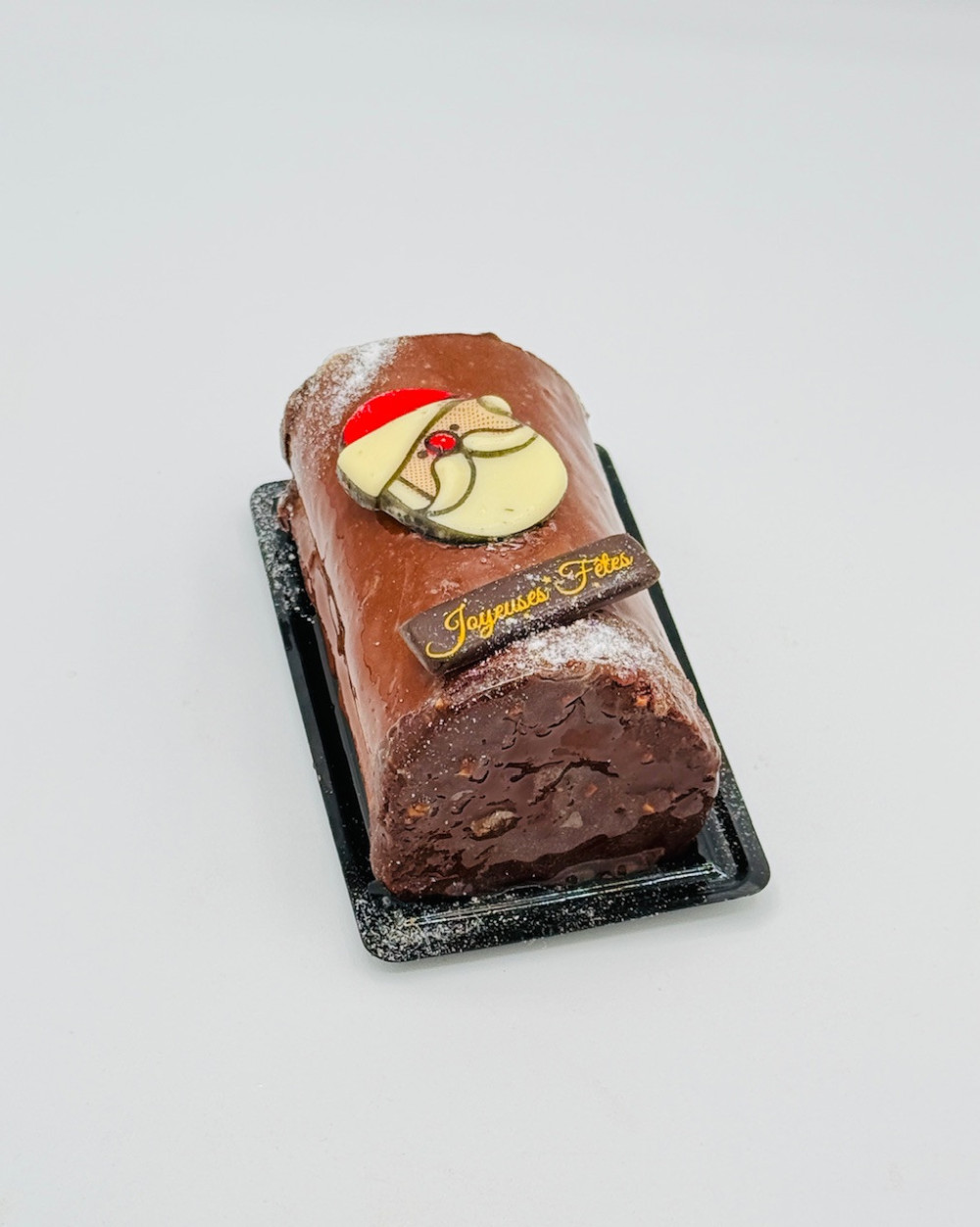 Génoise aux oeufs frais garnie d'une mousse au chocolat pur Vietnam, décor crème Chocolat, glaçage gourmand noir