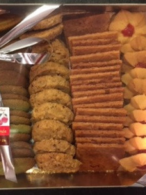 Coockies aux noix, biarritz pistache, sablé poche bigarreaux, sablé noisette et tuille aux amandes